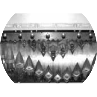 此刀輥是針對ABS.PC.尼龍等堅硬材料進行特殊設計。刀具沉入較深,單次切料較少,減少沖擊,同時降低噪音。